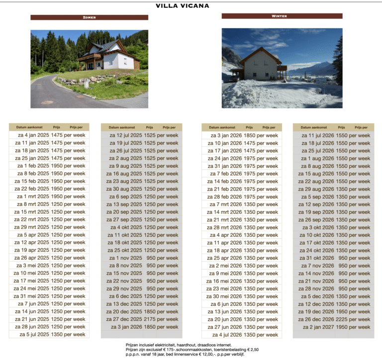 Tarieven Nassfeld